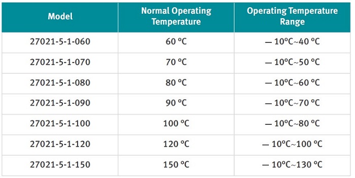 Sê-ri 27021-5-1 là máy dò nhiệt nhiệt độ cố định phù hợp để lắp đặt ở những nơi dự kiến xảy ra đám cháy nhiệt cao hoặc ở những khu vực có điều kiện môi trường xung quanh không cho phép sử dụng các phương pháp phát hiện khác. Có sự thay đổi của nhiệt độ phát hiện như 60 °C, 70 °C, 80°C, 90°C, 100°C, 120°C và 150°C.