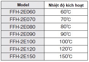 + Nhiệt độ kích hoạt: Theo bảng sau